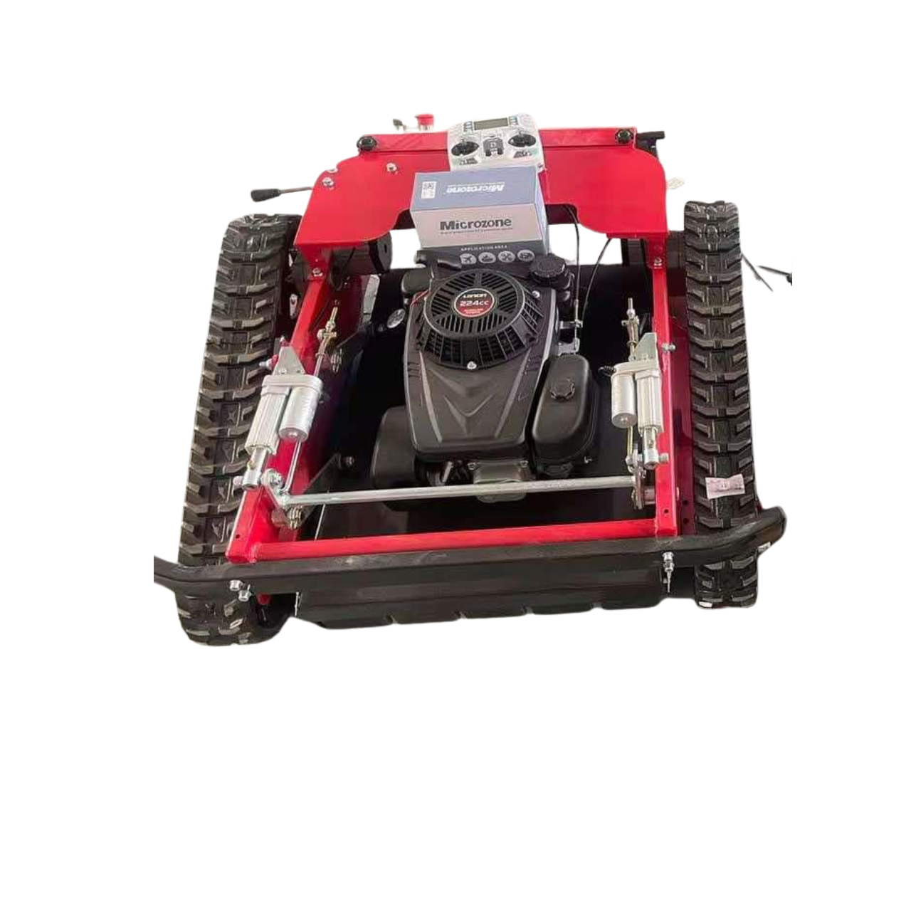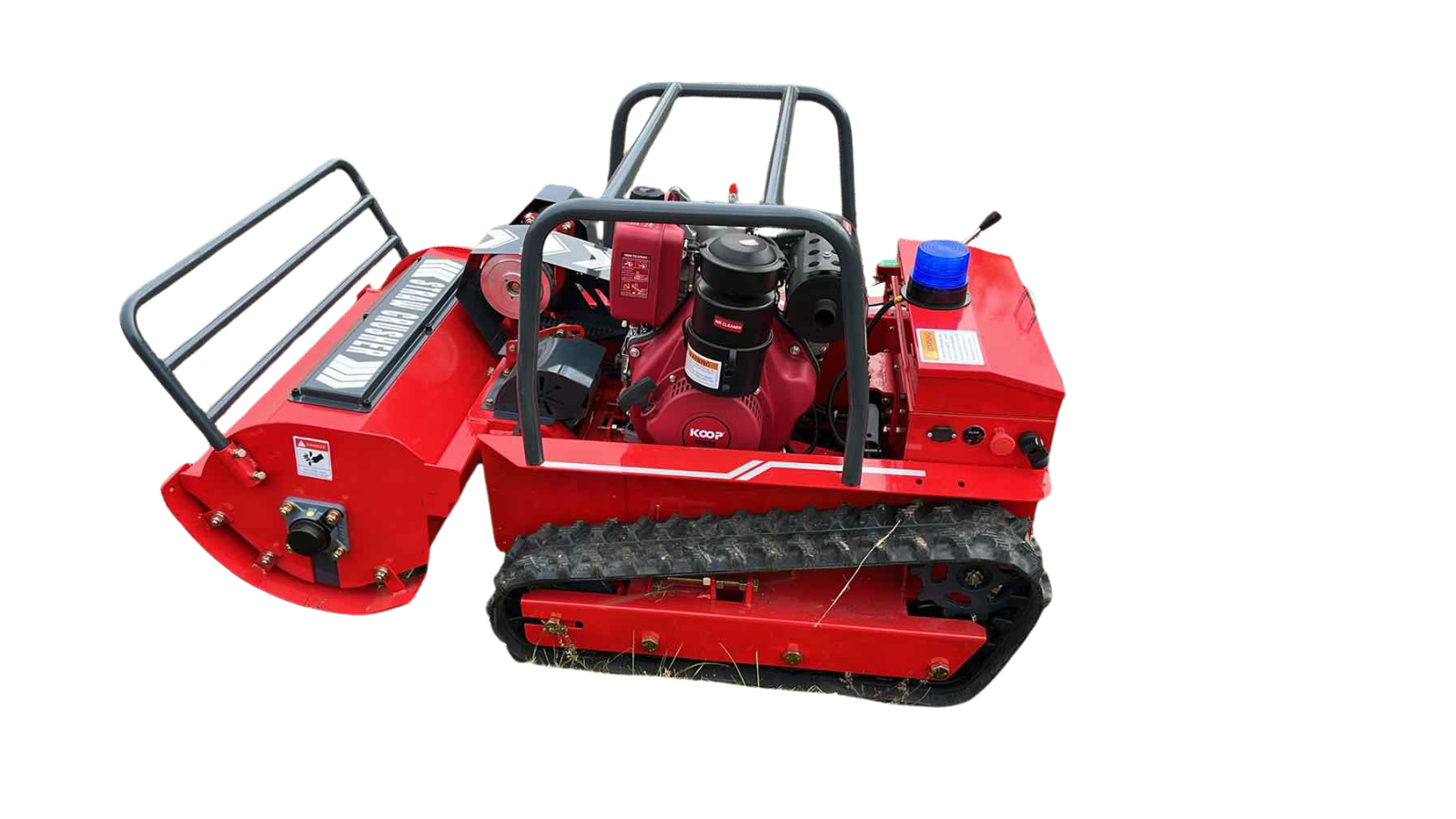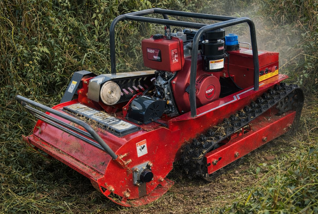 A lánctalpas kialakítás brutális tapadást és kiváló terepjáró képességet biztosít, ezért az R80 magabiztosan mozog laza talajon, nedves fűben és egyenetlen terepen is. A távirányítás akár 500 méteres hatótávon belül teszi lehetővé a biztonságos munkavégzést, távol tartva a kezelőt a veszélyes lejtőktől és akadályoktól.
